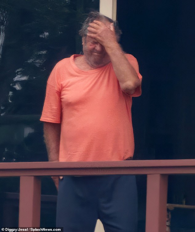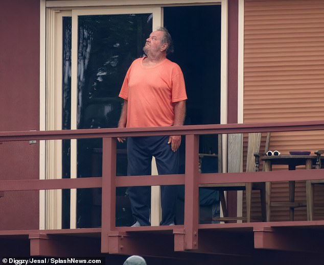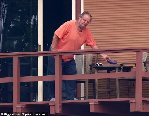 On Thursday, Nicholson was pictured enjoying the fresh air overlooking Franklin Canyon Reservoir. He wore a loose-fitting pale orange shirt and baggy sweatpants as he leaned up against a balcony railing on the crisp morning outing.