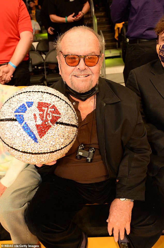 Nicholson pictured in October 2019 with the NBA’s 75th anniversary basketball at the Staples Center