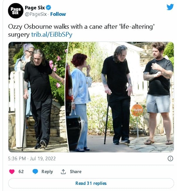 Rock legend Ozzy Osbourne was recently spotted using a cane as he navigates life after undergoing life-saving surgery, which garnered significant attention in the media.