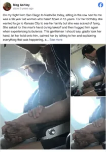 As Megan was flying from San Diego to Nashville with Southwest Airlines, she noticed a 96-year-old woman who seemed a bit uneasy. It turns out, the elderly lady hadn’t flown in a whopping 15 years and was feeling quite anxious. But, as fate would have it, she had a “flight angel” sitting next to her. A kind gentleman who understood her fear and offered his support without hesitation. Throughout the flight, this gentleman gladly took her hand, letting her hold onto him tightly, and soothing her with his reassuring voice. He patiently explained everything that was happening during takeoff and even comforted her when things got a bit bumpy.