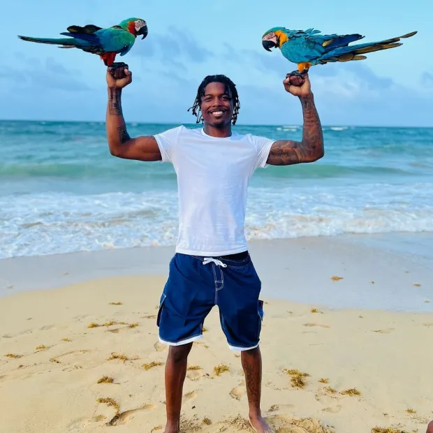 Jackson also posted pictures of himself smiling on a beach with two parrots, flexing with a lizard, and taking selfies in front of a mirror to show off his stylish clothes.