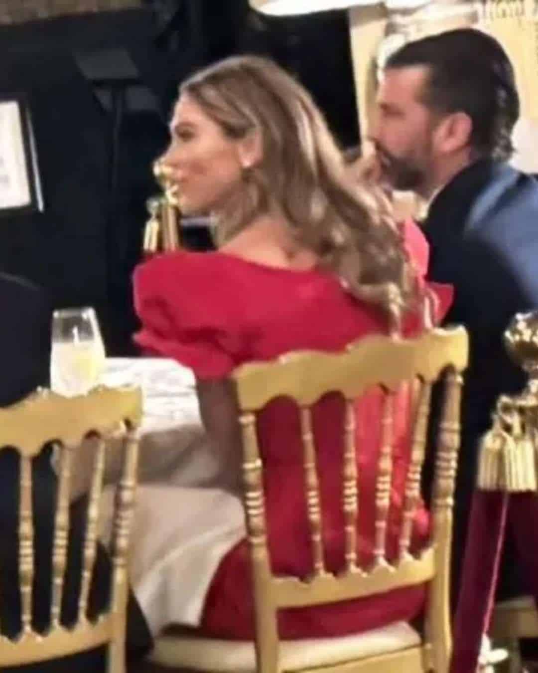 According to a picture posted on X, Anderson, 38, sat next to Don Jr., 46, and wore a bright red dress for the occasion.