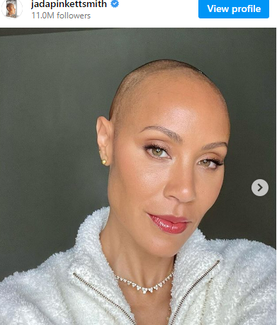 In December 2021, Jada also shared a video showing a mark on her head and confirmed that she had alopecia. She said the mark appeared after she went bald and just wanted to let people know so that they wouldn’t think she had undergone brain surgery. “Me and this alopecia are going to be friends…period!” she wrote.
