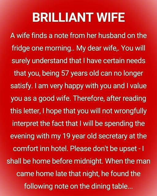 But little did he expect the cunning response waiting for him when he got home. On the dining table, he found another note written by his wife.