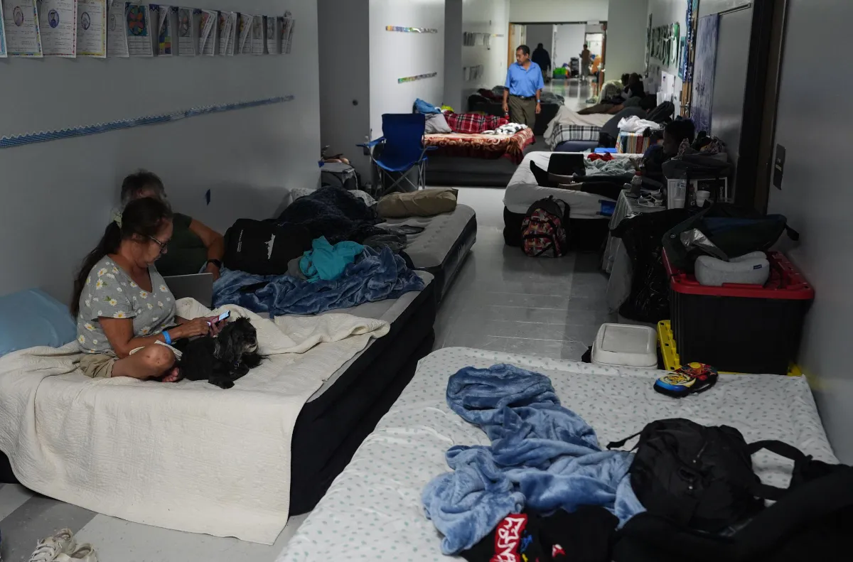 People seek shelter at Virgil Mills Elementary in Palmetto, Florida, with their pets on October 9, 2024 | Source: Getty Images