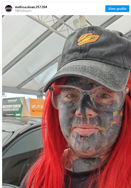 Sloan continues to have her partner give her three “tattoos prison style” every week despite the fact that she is unable to find gainful employment due to the extensive ink covering her body and face.
