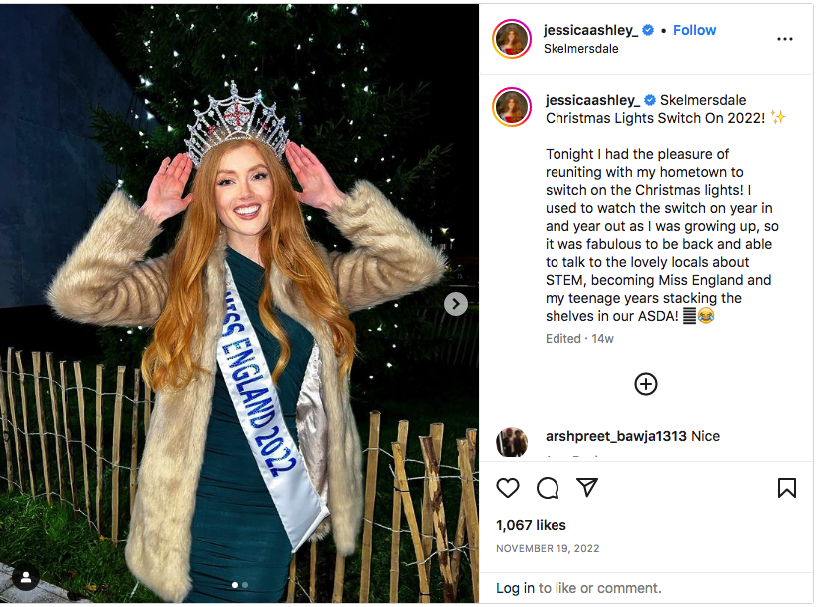 Jessica entered the “Miss England” beauty pageant in 2021 and came in second place. She became the first red-haired lady to win Miss England the following year after winning the contest.