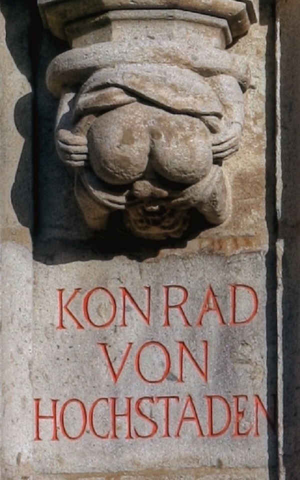 At first glance, the grotesque male character beneath the statue of Archbishop Konrad von Hochstaden appears to defy explanation. With its contorted posture and exaggerated features, it exudes a sense of whimsy and absurdity that is both captivating and perplexing. Some interpretations suggest that the figure represents a jester or fool, engaged in a comedic performance for the amusement of passersby. Others speculate that it may have served a more symbolic purpose, conveying a deeper message about the transience of earthly power and the folly of human ambition.